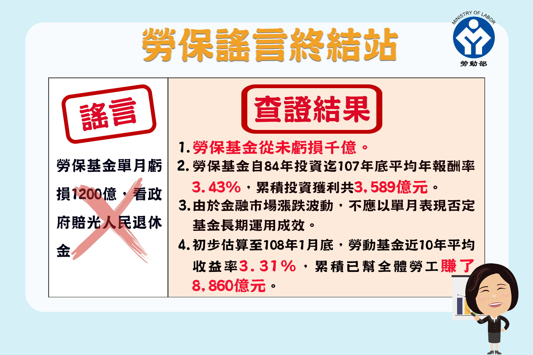 出處:中華人事主管協會 有關外界質疑勞保基金單月鉅額虧損,勞動部勞動基金運用局嚴正聲明並澄清: